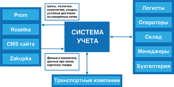 Develop a system that allows you to serve orders coming from various sources (Site, marketplace platforms(Prom, Rozetka, Zakupka)) to systematize and distribute by sales sources, with a clear distribution by legal entities. Order processing time is reduced from 15 to 5 minutes. Due to automation, to reduce staff needed to receive orders.